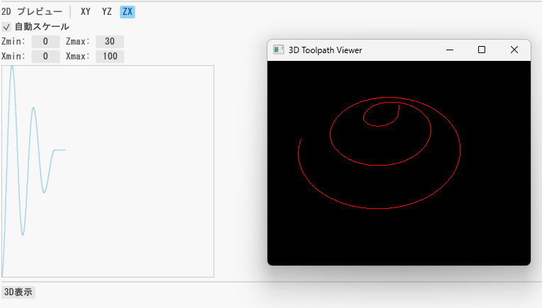 連続補完で移動する軌跡を描く、数値の破綻条件でないことの確認が目的